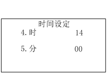 通過按“↑↓”按鍵選擇修改時間參數(shù)(選中項反色顯示),“+,-”按鍵來修改時間,“確認(rèn)”按鍵保存新設(shè)置的時間,“取消”按鍵不保存新設(shè)置的時間并返回主菜單。
